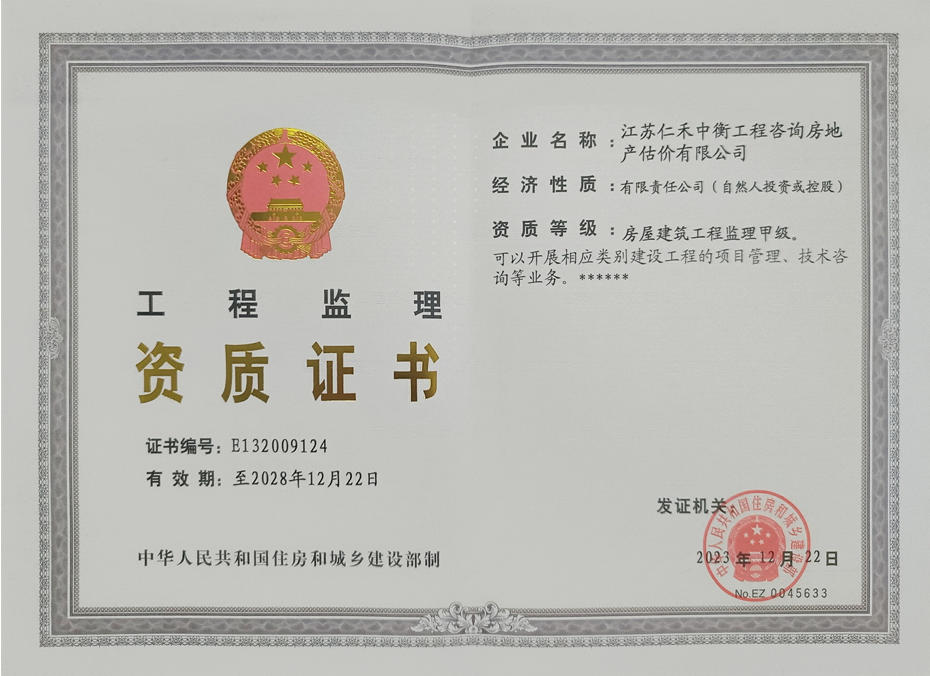 - 房屋建筑監理甲級證書